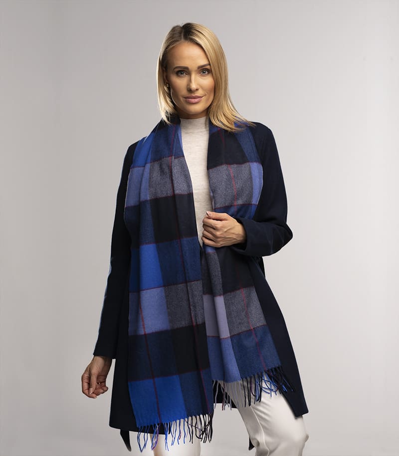To není jen šál – to je prožitek nejvyššího komfortu. Vyrobený z nejkvalitnějšího kašmíru nabízí náš šál nepřekonatelnou hebkost, která jemně pohladí Vaši pokožku. Kašmír je materiál s výjimečnými termoregulačními vlastnostmi, takže bez ohledu na roční období Vám šál poskytne útulné teplo. Díky svému univerzálnímu designu se náš modrý károvaný šál skvěle hodí jak k běžným městským outfitům, tak i k elegantním kreacím pro zvláštní příležitosti. Můžete jej volně omotat kolem krku nebo stylově naaranžovat přes ramena – volba je jen na Vás.