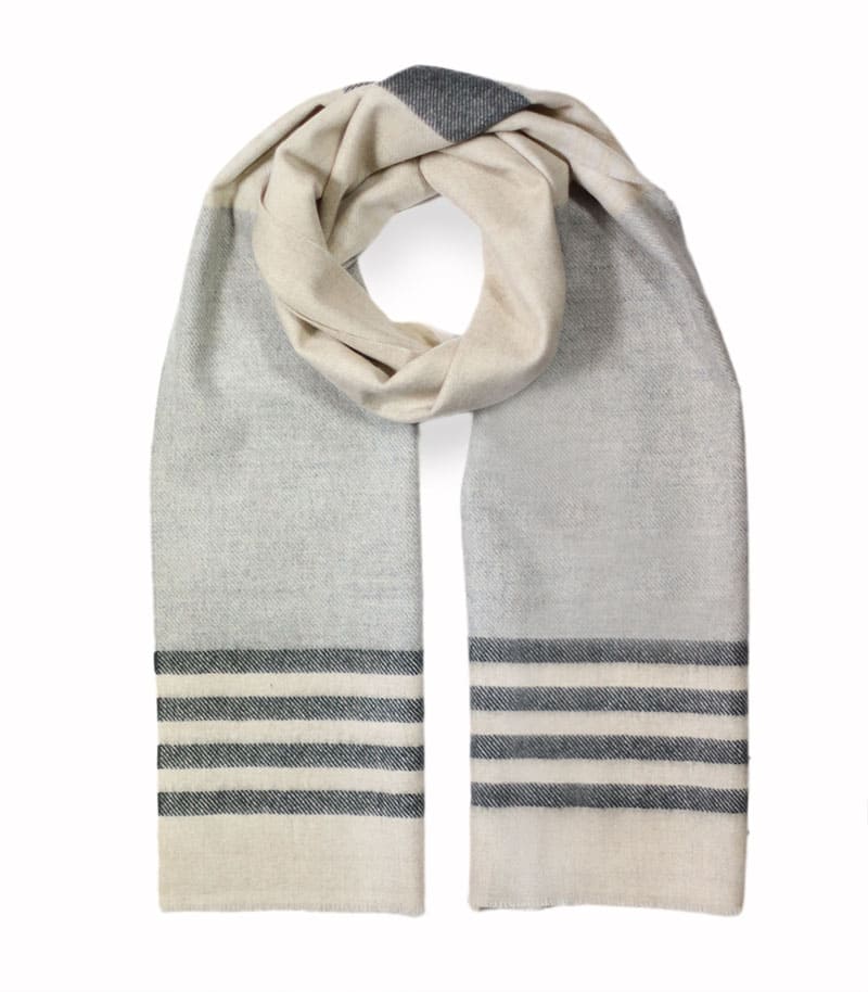 Unisex kašmírový šál v béžové barvě je ideálním spojením elegance, komfortu a nadčasového stylu. Vyrobený ze 100% přírodního kašmíru a ozdobený jemnými třásněmi Vás nejen zahalí do měkkosti, ale také dodá každému outfitu ušlechtilý charakter. Díky své univerzální barevnosti – béžovo-šedé – se skvěle hodí jak do dámského, tak i pánského šatníku. Navíc se výborně kombinuje s klasickým kabátem, elegantním sakem i ležérní bundou.